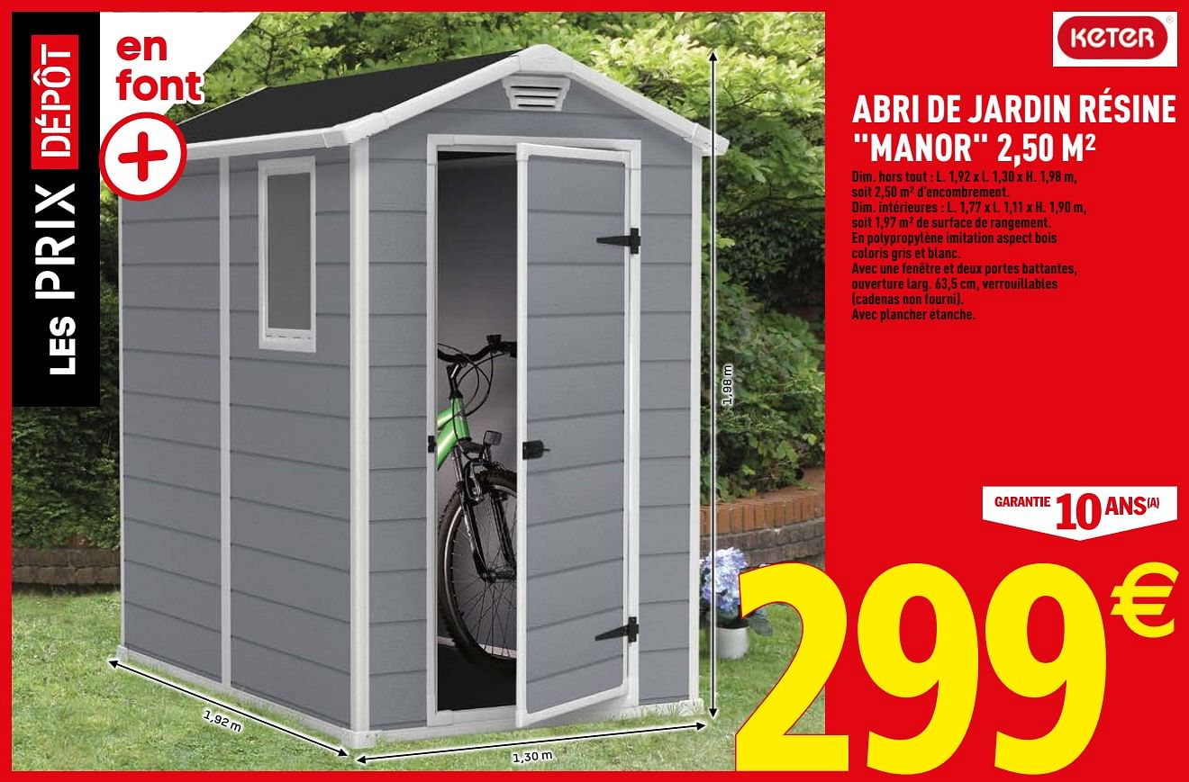 Des spécialistes travaillant dans nos entreprises partenaires se offres, infos, conseils et guides autour de la maison, du jardin et des loisirs: Passer aux principaux résultats de recherche. Abri de jardin résine , m². A commencer par les principales couleurs dans lesquelles il est vendu pour arriver aux informations et conseils de son installation et entretien, nous vous révélons. Bricodepot 29 mars 11 avril 2019.